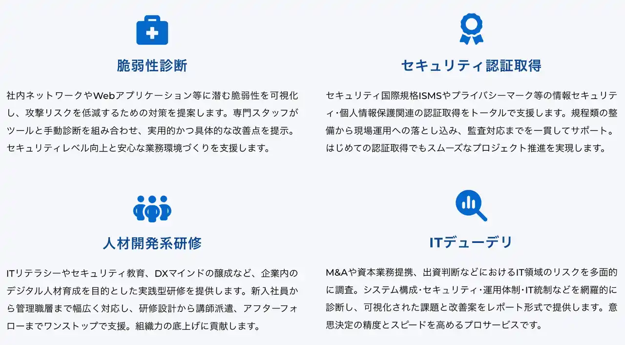 ◆「スマート情シス」オプションサービス 経営リスクの最小化も、IT戦略の最大化も。まるっとスマートにおまかせください。セキュリティ強化、ガバナンス整備、人材育成など企業の信頼性と持続的成長をサポートします。 |