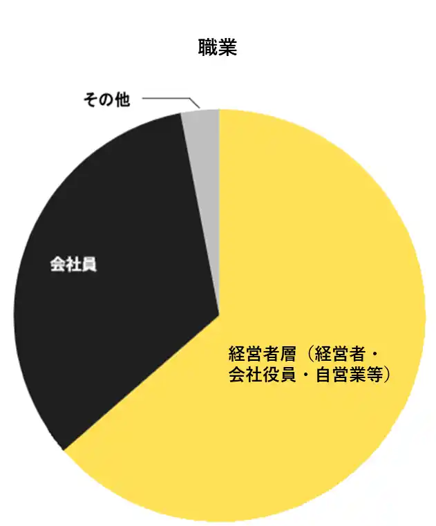 | 経営者層(経営者・会社役員・自営業等)の比率は6割超。 | ||||||||||||||