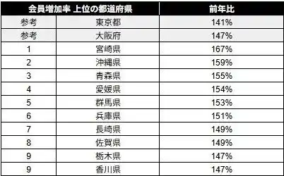 ●地方居住の会員も増加。都市圏と同等の増加率の地域も多数で、