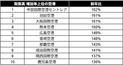 ●国内空港施設における加盟店の取扱高は前年比で146%と増加。