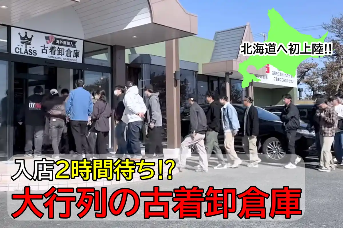 過去オープンの際にはすべての店舗で大盛況となった古着卸倉庫CLASS1ですが、中でも2月28日にオープンした浜松倉庫(冒頭画像)ではオープン時に700人を超える大行列、入店まで最長2時間待ちとなるなど古着店の常識を覆す人気となりました。 |