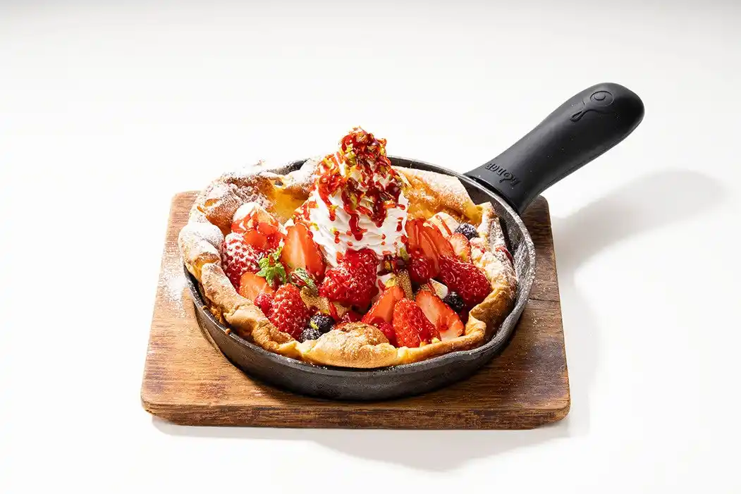 | 美味しいいちごを皆様に長く楽しんでいただけるよう、5月下旬ごろまでいちごフェアを開催します。ふわふわダッチベイビーパンケーキや、5種の贅沢スイーツアソート、”動画映え”間違いなしのいちごミルクなど |