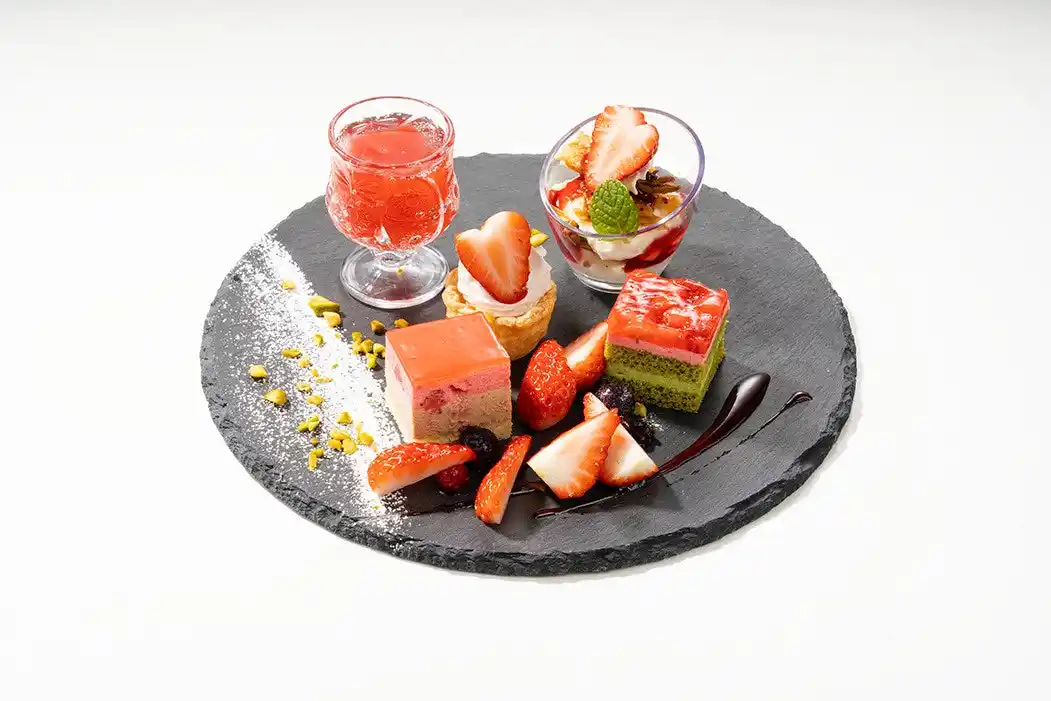 | A. アイデアの原点は、長野県長野市の「長野ベリーファーム」様が育てる、安心安全で美味しい信州いちご との出会いです。 苦労した点は「この素晴らしい素材が持つ多彩な魅力を、いかにしてお客様に飽きずに楽しんでいただくか」という点でした。これをクリアするため、開発したのが「ストロベリーパレット」です。【おひとりアフタヌーンティー】をテーマにフレッシュなタルト、濃厚なケーキ、爽やかなジュレなど を一皿にまとめることで、「甘酸っぱい」「クリーミー」「みずみずしい」といったいちごの持つ多彩な表情を一度に楽しめる欲張りプレート を実現しました。 | |||||||||||||||||||