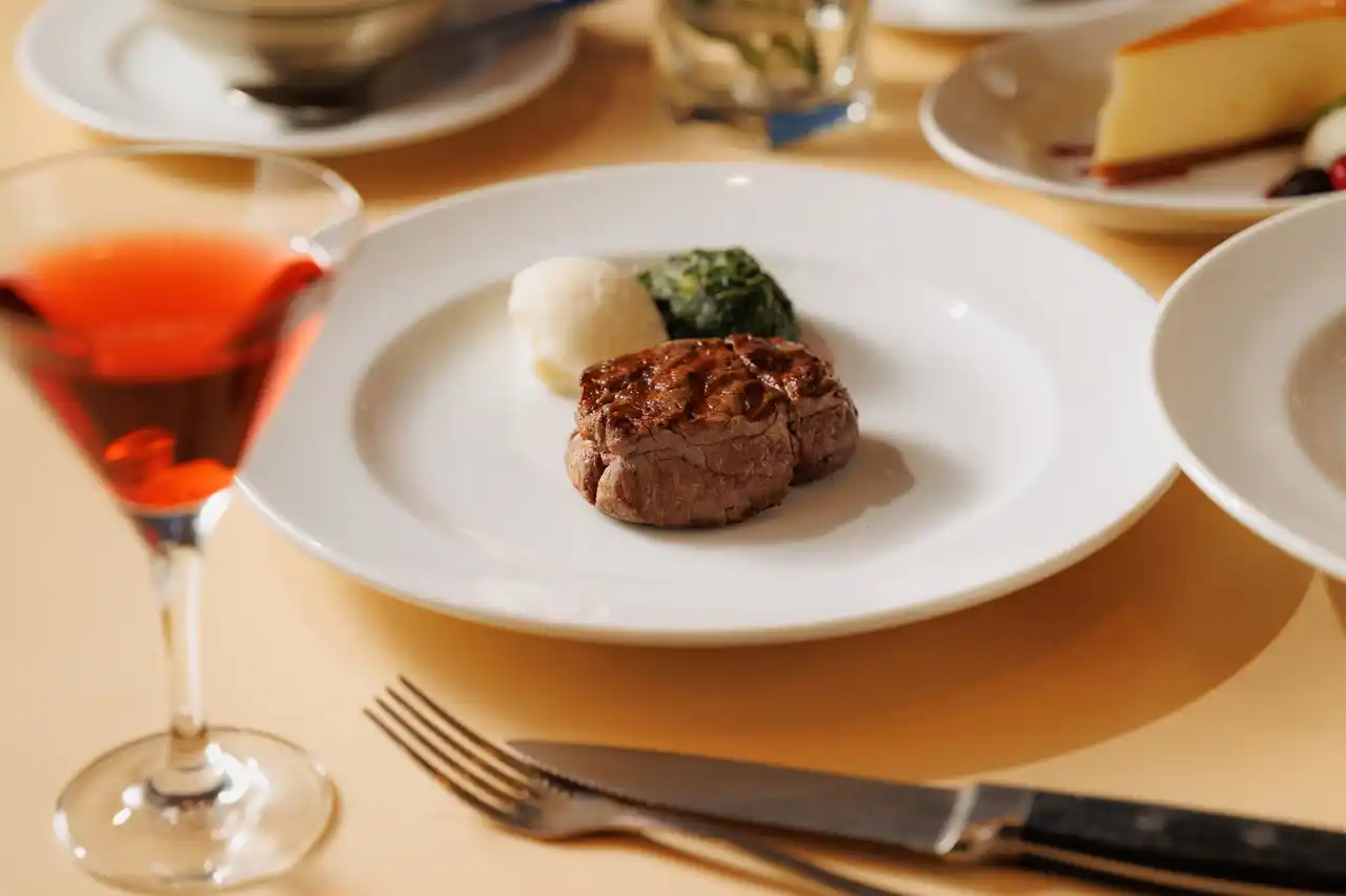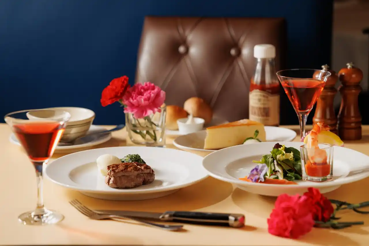 さらにフィレミニョンコース限定で、NYステーキハウスを象徴する“シュリンプカクテル”を添えて提供プリッとした海老の食感と爽やかな酸味が楽しめる、母の日だけの華やかな前菜盛り合わせです。NYの王道スタイルと六本木のエレガンスが調和した、特別感あふれる一皿に仕上げました。 |