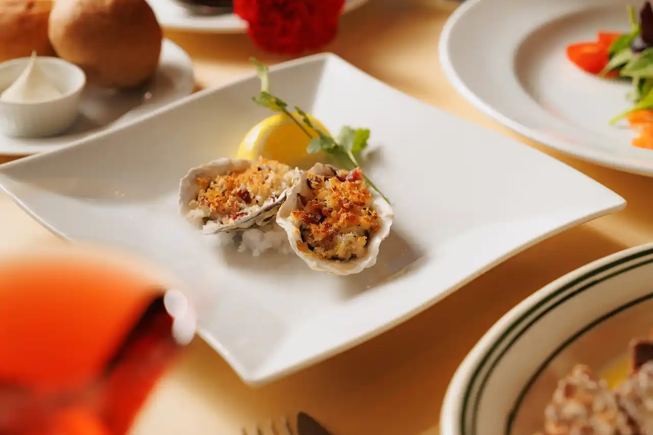 また「母の日NYサーロインステーキコース」には、NYステーキハウスで長く親しまれてきたホットアペタイザー「オイスターカジノ」をご用意。オイスターにベーコンとパン粉を重ねて香ばしく焼き上げた一皿から、サーロインステーキへと続くNYステーキハウスの王道をお楽しみいただけます。 |