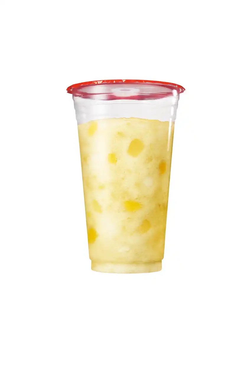 具材感のある角切りパイナップルとパインゼリー、ナタデココのもぐもぐ感と、パイン味の氷のシャリシャリ食感が特長の暑い季節にぴったりな新感覚フローズンドリンク。 |