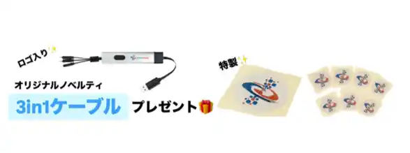 また、当日ブースにお越しいただいた方限定で、オリジナルノベルティ「3in1ケーブル」または「オリジナルステッカー」をプレゼントいたします。ぜひお気軽にお立ち寄りください。 |