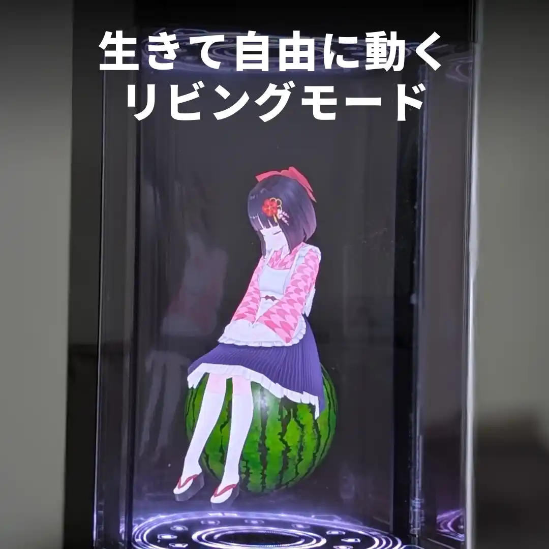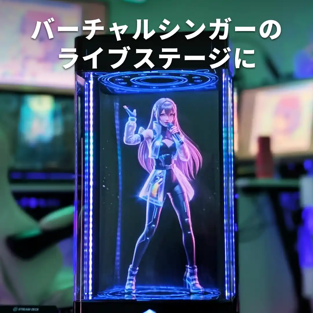 Gateboxに動画形式(mp4)でキャラクターの映像を表示するだけでも、ただのモニターとは違う実在感溢れる映像表現が可能。キャラクターのダンス動画を表示して光り輝くライブステージにしたり、自身で開発したAITuber・AIキャラクターの魅力を引き立てる表現ツールとしても活用できます。 |
