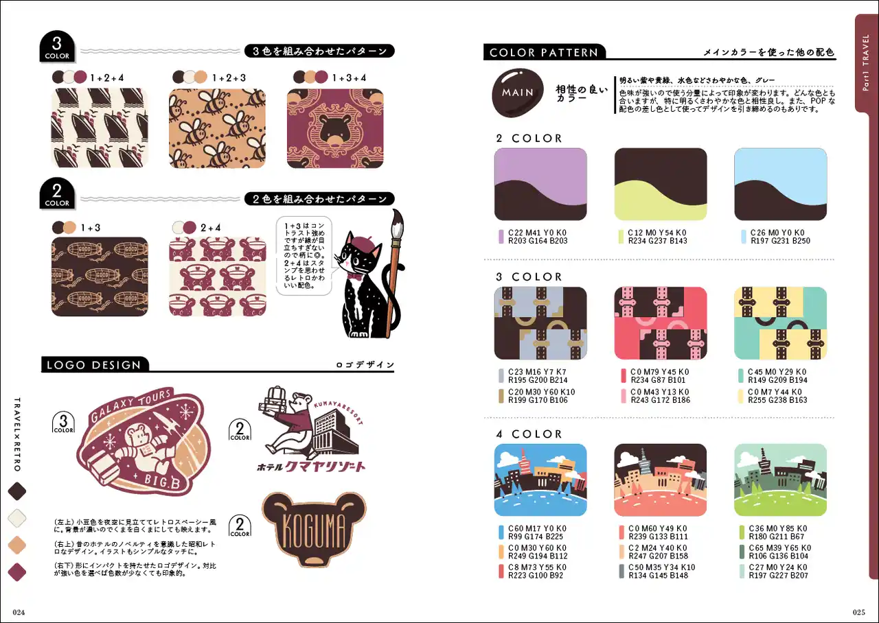 配色だけでなく、イラストモチーフやロゴのデザインの参考になる作例も多数掲載しています。 |