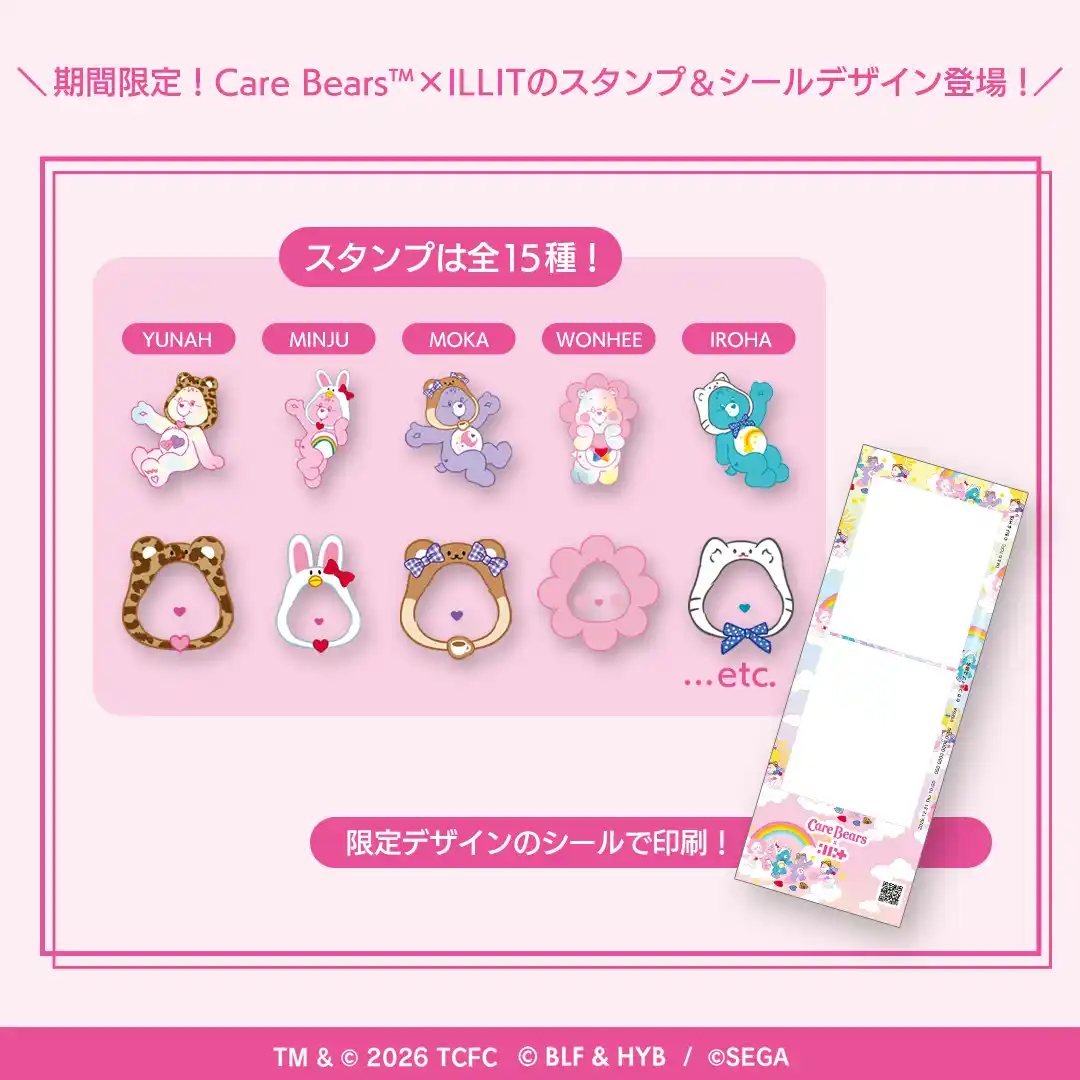 今だけの「Care Bears(TM) × ILLIT」プリクラが楽しめます。 |