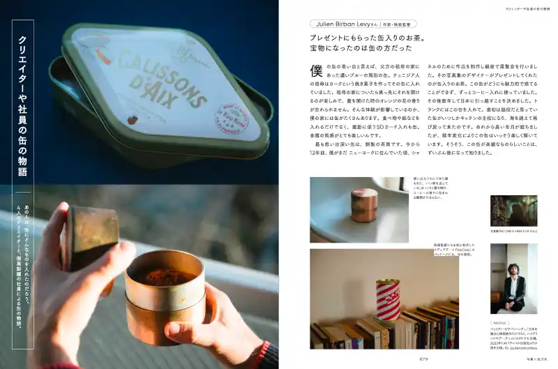 松永さんの工作室から / 工場で働く「人」と「機械」 缶が生まれる場所を巡って ━━原研哉さんと考えた、缶のこと もっとよく、缶を知る(缶の図鑑 / 缶のカタログ / 缶の豆知識) クリエイターや社員の缶の物語 Julien Birban Levy /Sayaka Botanic /せいのちさと/Funny Dress-up Lab 奥深い缶の世界 中田ぷう 短歌 俵万智 側島製罐大解剖!米村知倫 / 側島製罐用語辞典 缶をつくる人の話 側島製罐まちあるき 側島製罐のあゆみ 120年続く缶作りを引き継ぐ 山野千枝・石川貴也 |