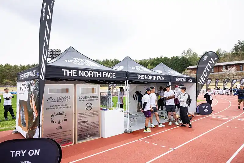 会場内では、出場者、来場者から不用となったウエアを集める回収BOXを設置します。そこで回収されたウエアは、ザ・ノース・フェイス独自の循環型アップサイクルプロジェクトである「EXPLORE SOURCE(エクスプロールソース)」によって、新たな製品に生まれ変わります。 |