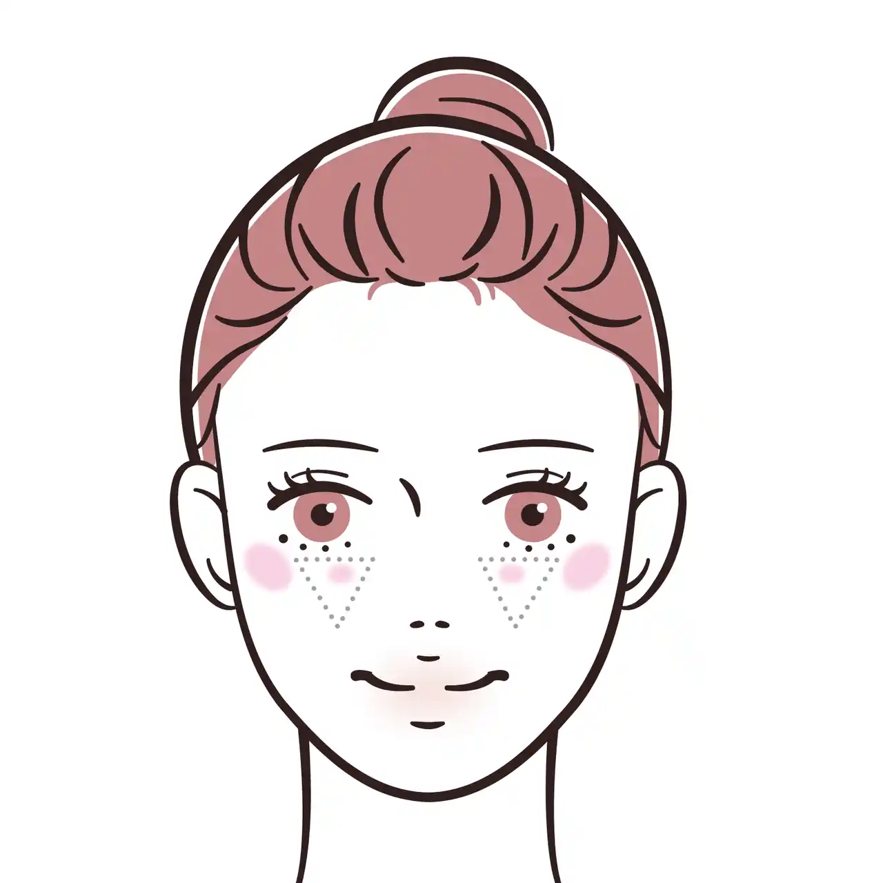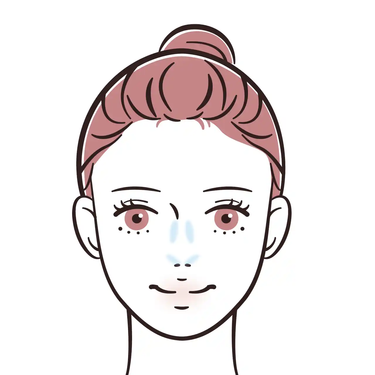 鼻筋に入れるとき、目の横には入れないのがポイント。 |