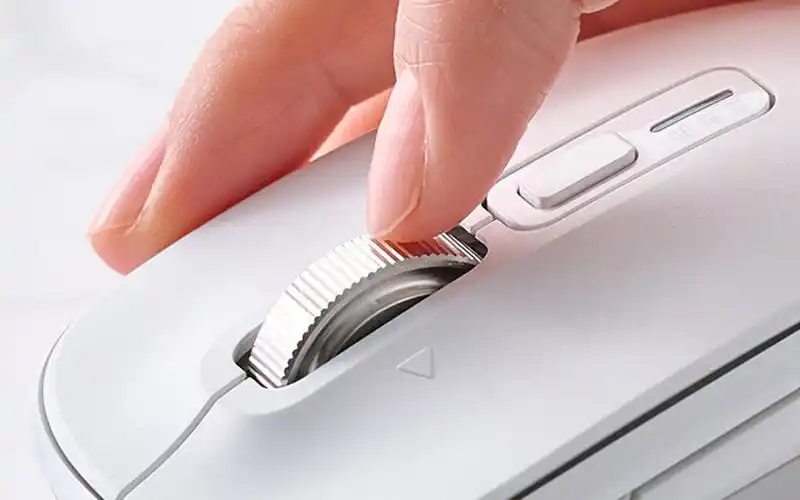 ▲ ホイールを傾けるだけで横スクロールを可能にする チルトホイールを搭載 |