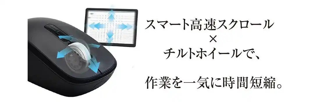 傾けるだけで横スクロールが可能なチルトホイールを搭載。ホイールだけで上下左右にスクロールが可能。表計算ソフトやWebブラウザの閲覧性が大幅に向上します。 |