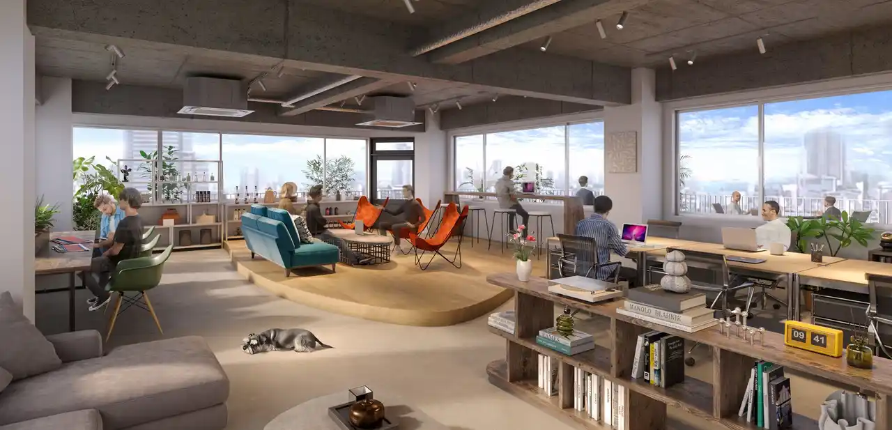 | 当施設では、ルーフトップテラスを含む全ての専有部内で愛犬・愛猫の同伴が可能です。場所の制約にとらわれることなく、ペットと共に過ごせる自由で豊かなワークスタイルを提案します。 | |||
