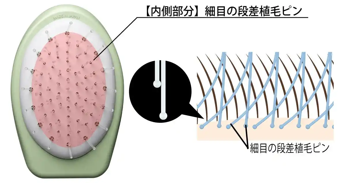 | 2. 指先を超えた「2種類のブラシ毛」によるWアプローチ | ||||||||||||||||||||||