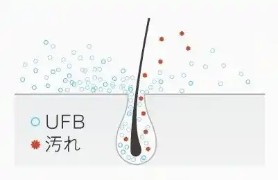 ウルトラファインバブルが毛穴の奥まで入り込む |