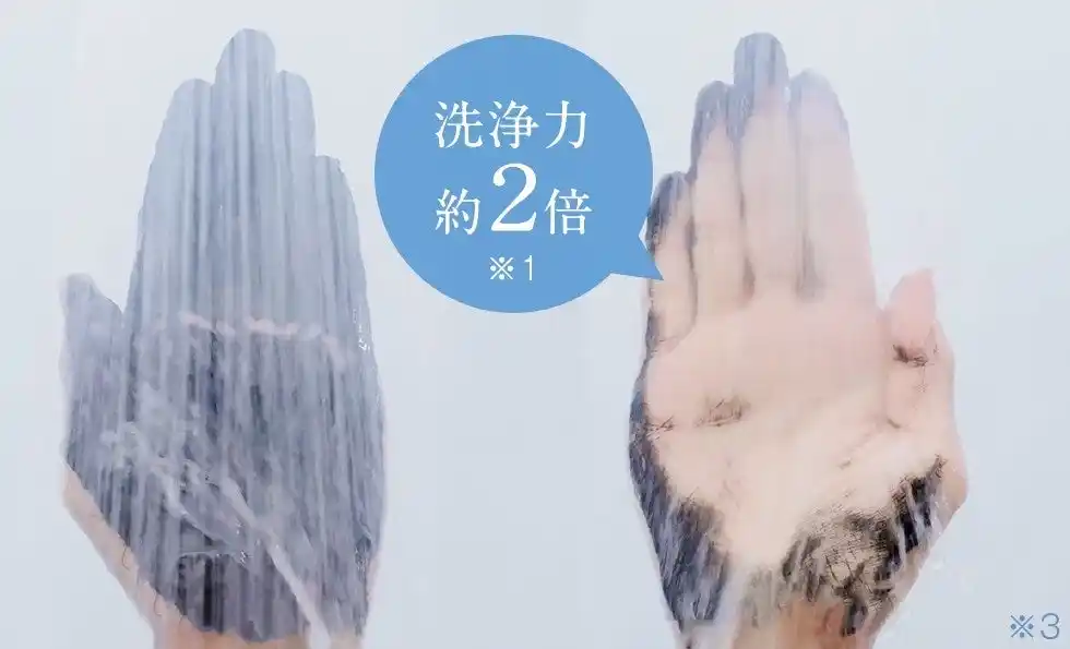 ウルトラファインバブルが毛穴や髪のすき間に入り込み、従来品と比較して高い洗浄力を実現。皮脂や汚れをしっかり落とします。 |