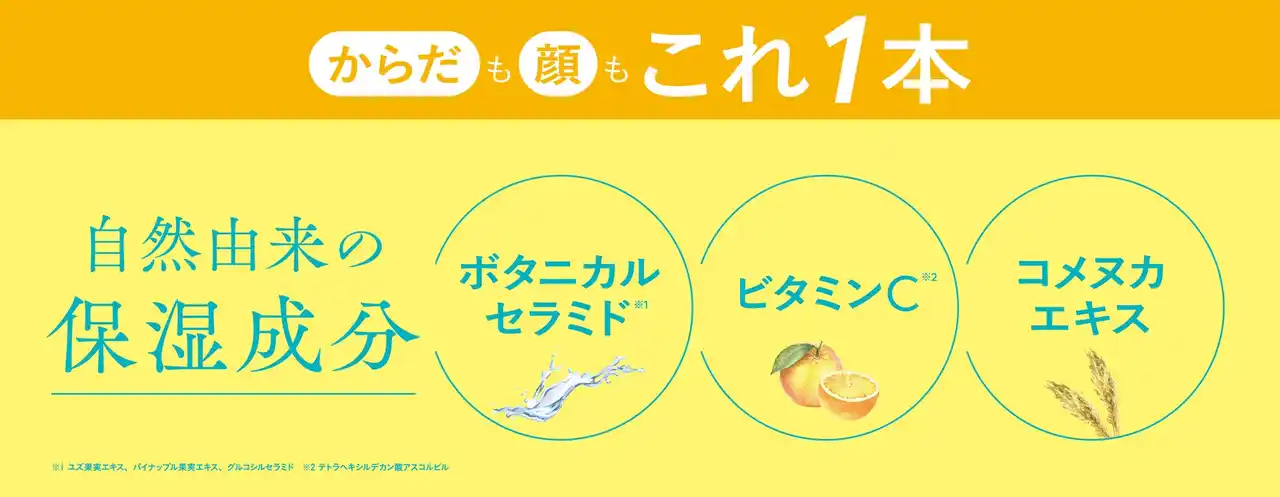 ※3 グルコシルセラミド(保湿成分)・ユズ果実エキス(保湿成分)・パイナップル果実エキス(保湿成分) |