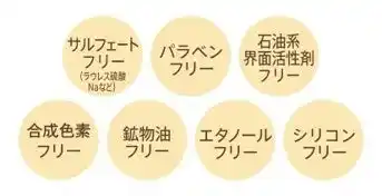 ※1 サルフェートフリー(ラウレス硫酸Naなど)、パラベンフリー、合成色素フリー、鉱物油フリー、石油系界面活性剤フリー、エタノールフリー、シリコンフリー |