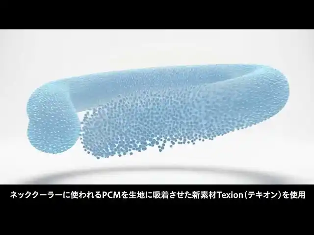 従来の冷感ウェアは、「触れた瞬間が冷たい(接触冷感)」や「汗や水分・風により冷感を得る(気化熱冷却)」といった冷たい素材が主流です。当社は、宇宙産業で培われたPCM素材の温度調節機能に着目しました。天候や発汗といった身体・環境条件に依存せず、生地そのものが熱を吸収して適温を維持する新素材「Texion(テキオン)」を開発。本シリーズはTexionによる初の製品になります。 |