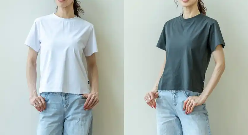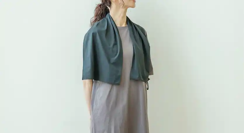 当社は、外出前の支度中や混雑した車内など、日常のあらゆる場面で快適に過ごせるウェアへのニーズに着目し、近年注目されているPCM(相変化材料)を繊維に付着・定着させる加工技術を研究。2017年より展開するライフスタイルブランド「FOOTMARK NATURAL」での経験も活かしながら、着用時から冷たさが持続する、新しい発想のウェア開発に取り組みました。 |