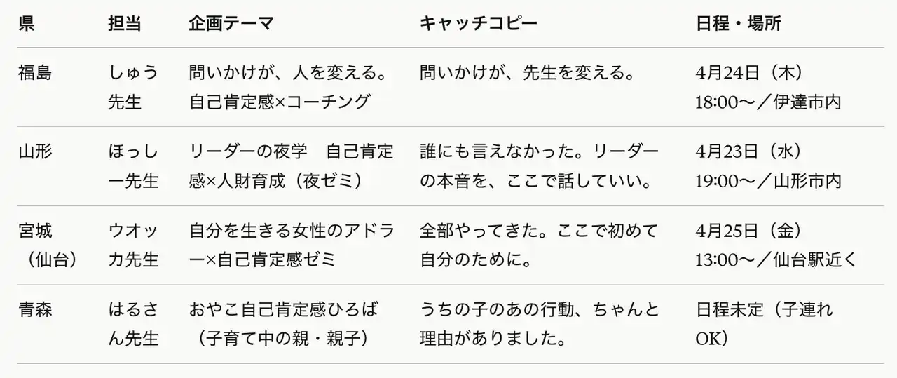 2026年12月に仙台で開催する「東北自己肯定感シンポジウム」への参加者 |