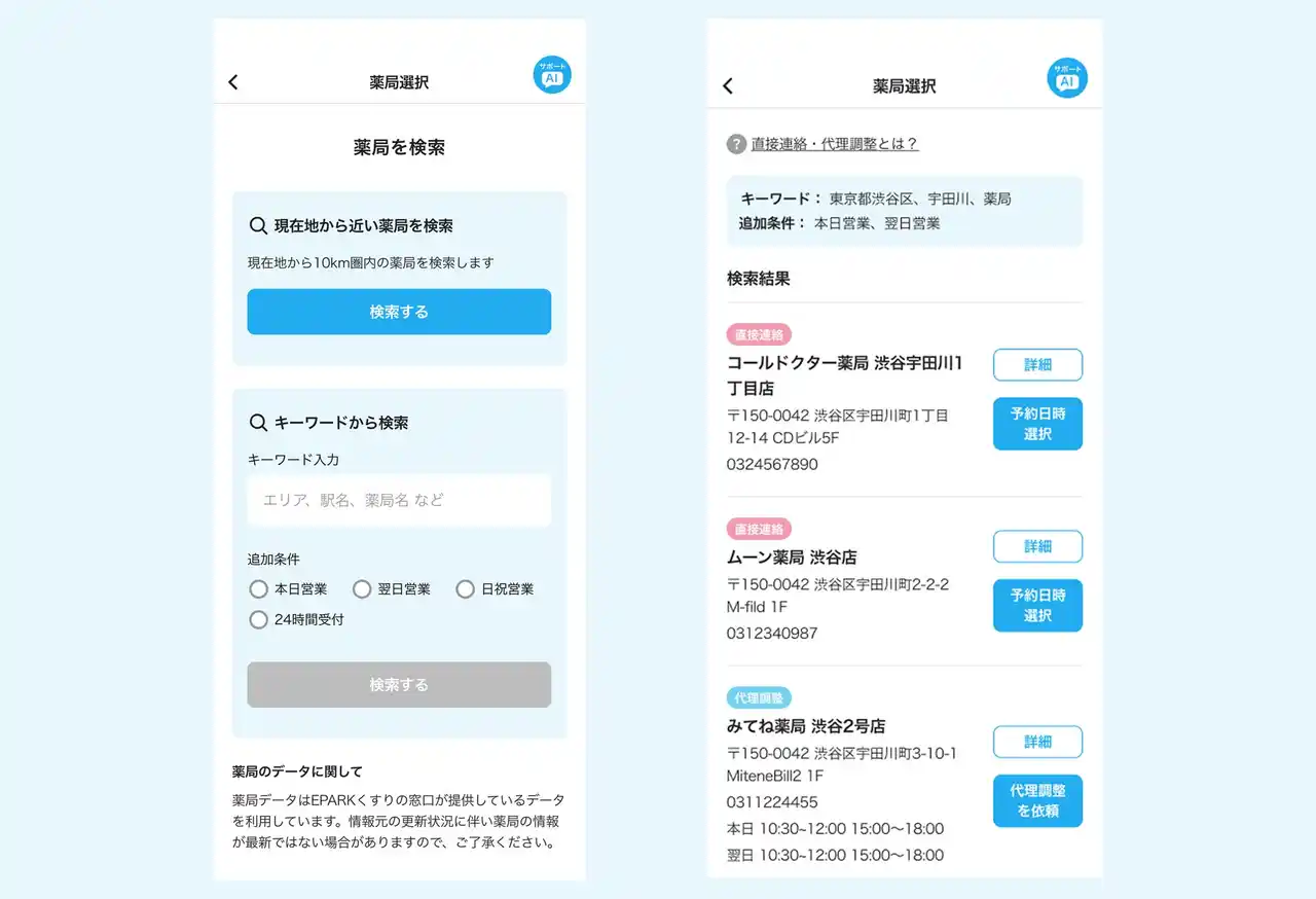 最新かつ正確な薬局情報のもとでのスムーズな薬局検索 |