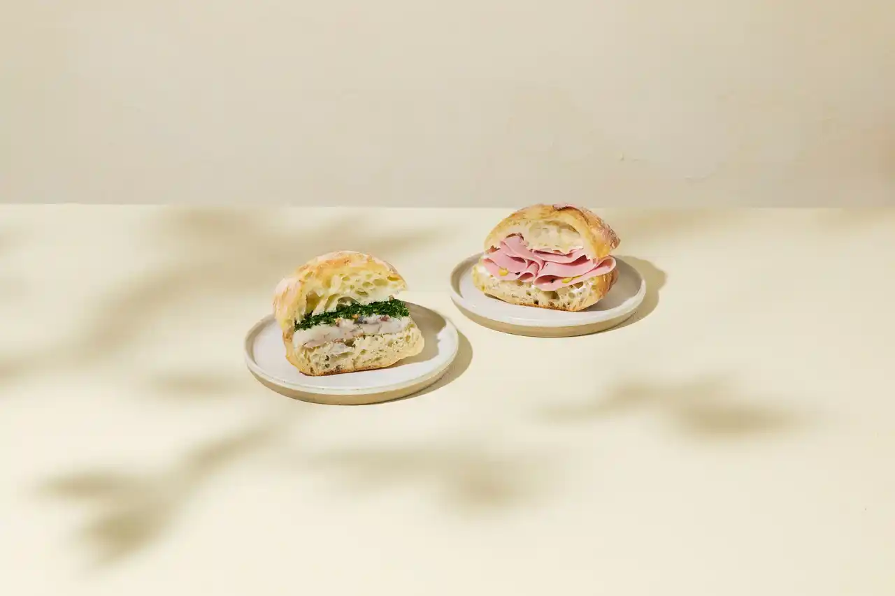 さばポテト サンドイッチは、香ばしく焼き上げたさばの旨みをなめらかなマッシュポテトでやさしく包み込み、ギリシャヨーグルトを合わせたチーズペーストの爽やかな酸味と、燻製マヨネーズのコクを重ねました。ピスタチオハム&チーズサンドイッチは、ピスタチオを練り込んだモルタデッラハムに同じくギリシャヨーグルトをブレンドしたチーズペーストを合わせました。いずれも軽やかな食感が魅力のチャバタでサンドし、素材の個性が重なり合う奥行きのある味わいに仕上げています。現在、鎌倉カフェと原宿カフェのみでお楽しみいただけるメニューとなっています。カフェでお気に入りのコーヒーと共にゆったり味わうのはもちろん、テイクアウトして鎌倉散策の合間のランチにもおすすめのサンドイッチです。 |
