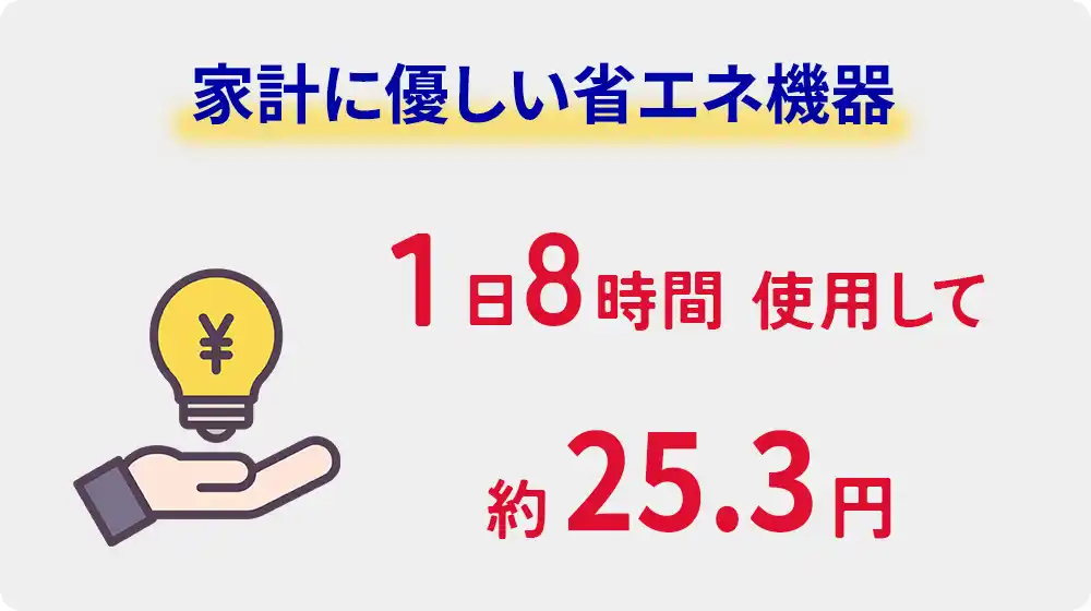 本製品の消費電力は102W程度です。電気代にもやさしく、ポータブル電源などでも駆動できる程度の電力なので、キャンプや車中泊などのアウトドアでもご利用いただけます。 |