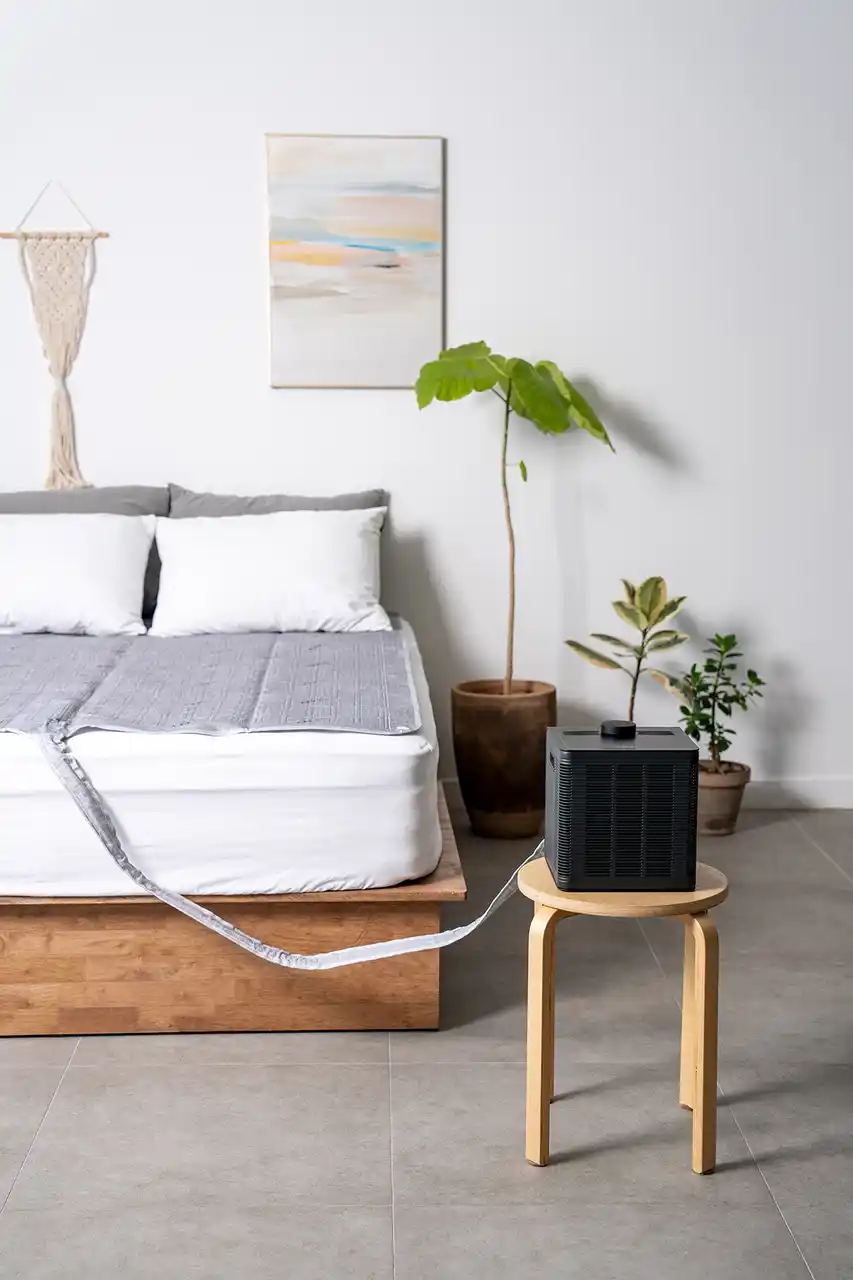 本体内部で最低18℃まで設定できる冷水を循環させます。 水が流れる音は皆無でマット全体がひんやりして気持ちいい感覚のまま寝られます。 |