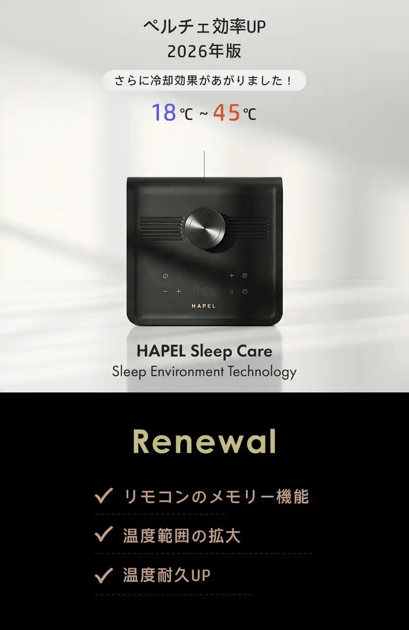 タイトル:設定温度は18℃!熱帯夜も朝まで快眠、オールシーズン対応の温冷水循環式マット URL:https://www.makuake.com/project/hapel002/