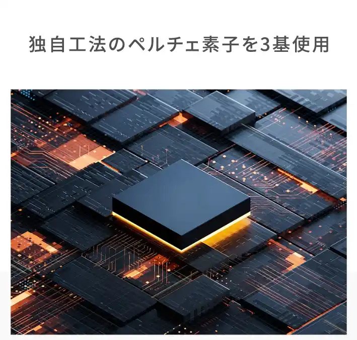 特殊な部品に電流を流すと片方は発熱、片方は冷却ができる電子部品です。 |