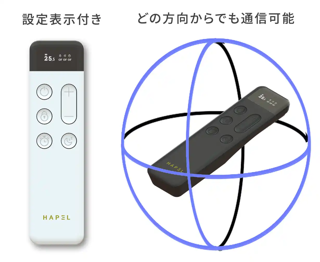 本体に向ける必要がないので、リモコンについた液晶画面を見て寝ながらでも操作が可能です。 |