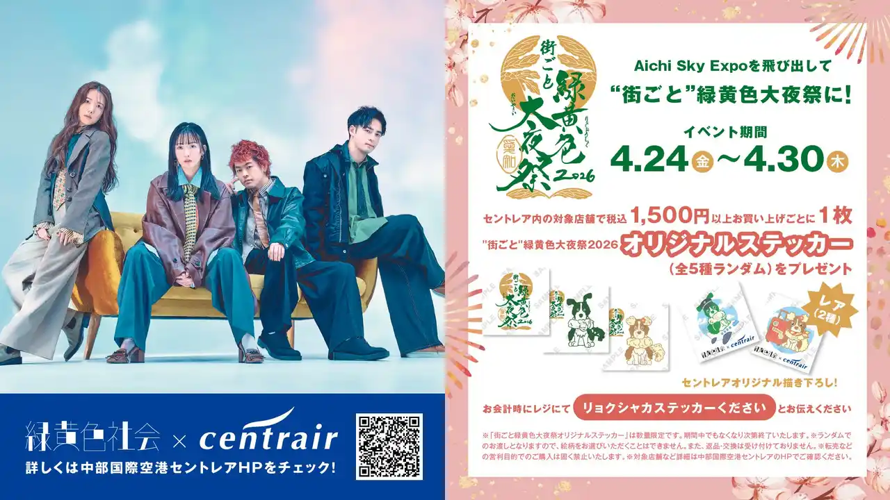 中部国際空港セントレア(所在:愛知県常滑市)は、愛知県出身の4人組人気バンド「緑黄色社会」との初コラボレーション企画として、2026年4月23日(木)から30日(木)までの8日間、空港内で特別キャンペーンを開催します。