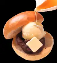 名古屋名物ナゴヤメシと緑黄色社会コラボレーションバーガー。小倉バタートーストにバニラアイスとメープルシロップを合わせスイーツにもなる新感覚バーガー。 |