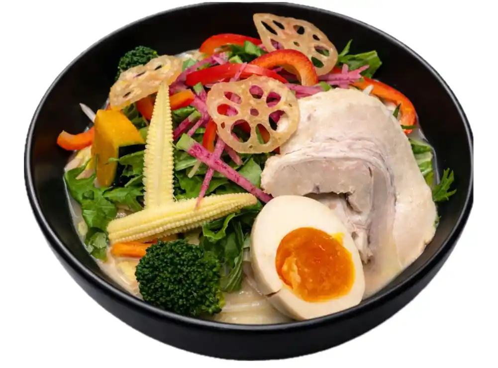 リョクシャカをイメージした緑黄色野菜たっぷりのタンメン。セットはチャーハン・唐揚げ・水餃子から1つ選択可能。 |