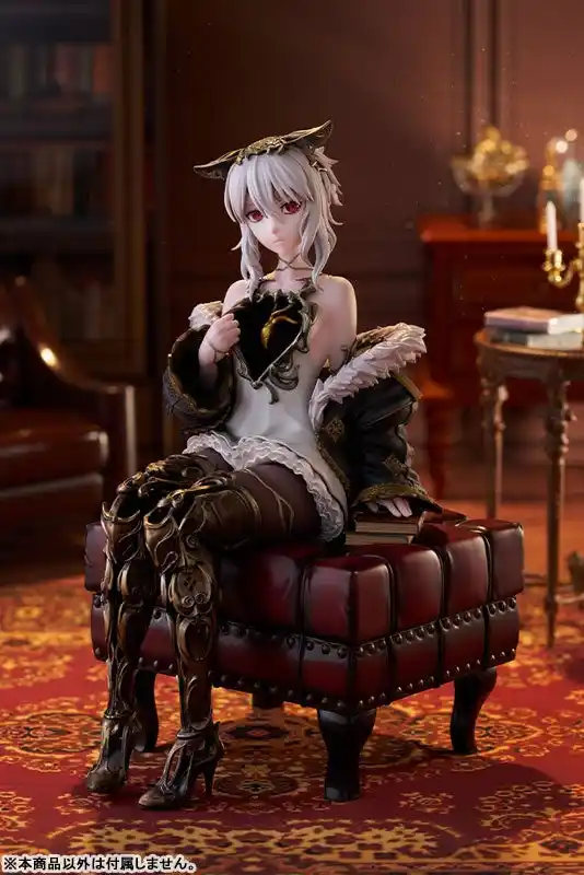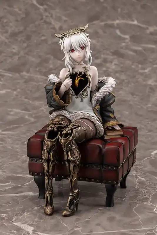 本を片手にリラックスして座る姿を立体化しました。台座はアンティークなスツールで、ゲームの世界観も感じられる豪華な仕様です。