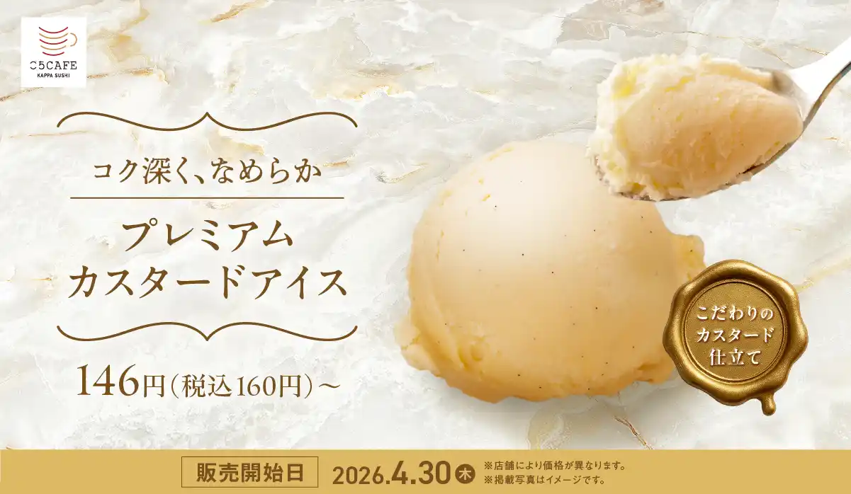 コロワイドグループのかっぱ寿司(カッパ・クリエイト(株) 本社:神奈川県横浜市、代表取締役社長:山角豪)は、2026年4月30日(木)から『プレミアムカスタードアイス』を販売いたします。