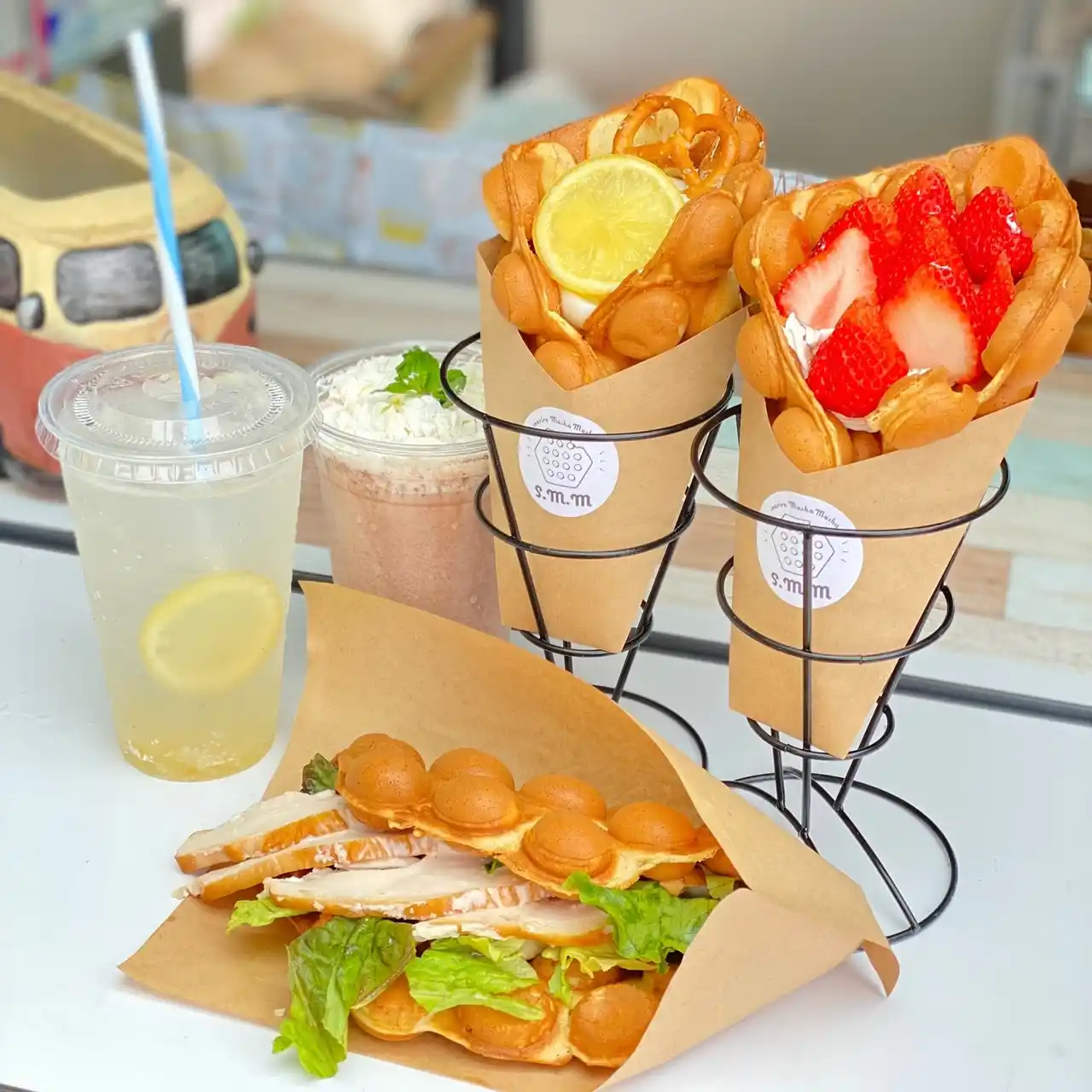 自家焙煎の深煎りコーヒー、本場仕込みのベトナムコーヒー、県産素材を使ったドーナツ、サクッともちっと食感のバブルワッフルなどなど。 |