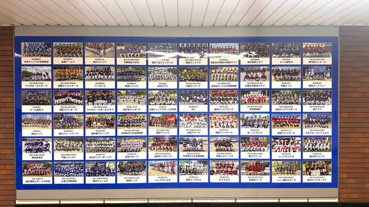 | 今回の広告ビジュアルはデザインを刷新し、本大会およびベイサイドカップジュニアに出場する全チームの集合写真を掲載しています。出場する子どもたち一人ひとりの姿を発信することで、一体感をより多くの方に感じていただける内容としています。掲出場所である関内駅は人通りが多く、横浜スタジアムの最寄り駅の一つであることから、スタジアム来場者など幅広い層への認知度拡大が期待されます。さらに、2026年3月に新施設「BASEGATE横浜関内」が開業したことにより、今後さらなる来街者の増加も予想されます。 | ||||||||||||||
