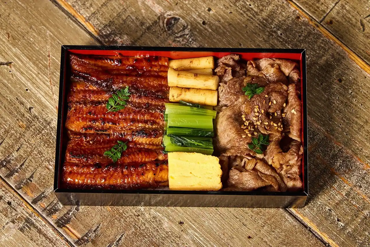 ■A5仙台牛すき焼きと鰻の蒲焼きのよくばり重 |