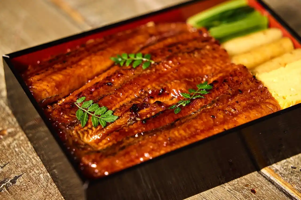 冷めても美味しく、鰻とすき焼きの濃厚な味わいをしっかり受け止める品質をセレクトいたしました。副菜には国産玉子を使ったふんわりとした玉子焼き、香り豊かなあさかごぼうの甘酢漬け、小松菜のおひたしを添え、彩りと栄養バランスにも配慮しております。 |