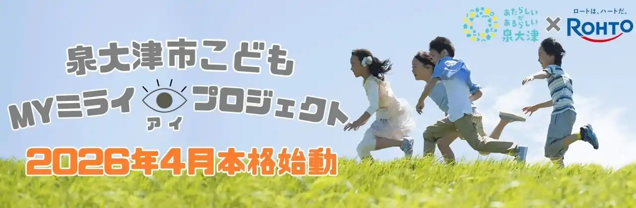大阪府泉大津市(市長:南出賢一、以下「泉大津市」)とロート製薬株式会社(大阪本社:大阪市生野区、代表取締役社長:瀬木英俊、以下「ロート製薬」)は、「Well-being」な社会の実現に向けた連携のもと、こどもの視力と目の健康に着目した「泉大津市こどもMYミライアイプロジェクト」を令和8年4月から本格始動します。 |
