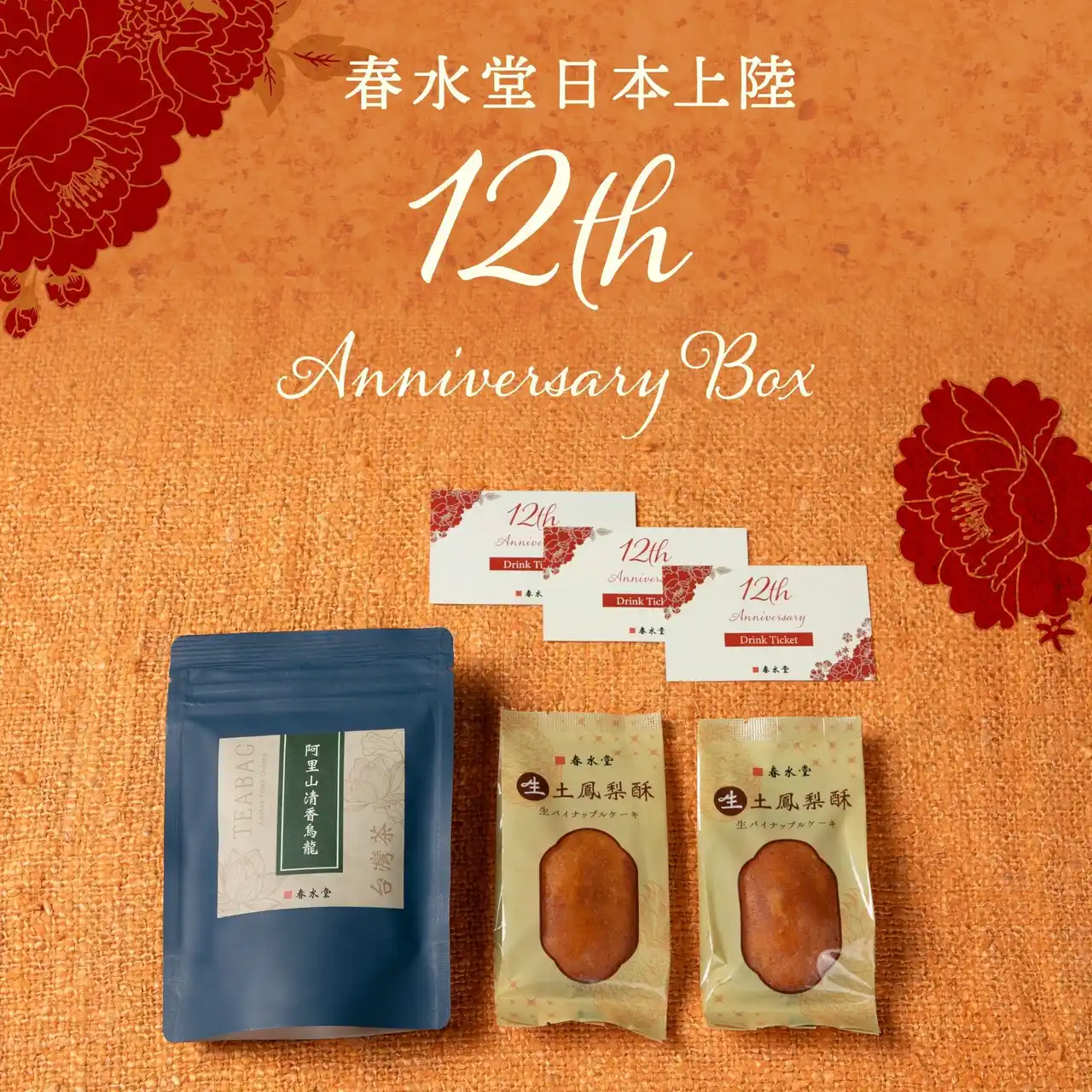 日頃のご愛顧に感謝を込めて、春水堂では7月19日(土)10時より、オンラインショップ「BASE」にて、数量限定のAnniversaryBoxを発売いたします。お店でもお家でも春水堂を堪能できるラインナップです。 |