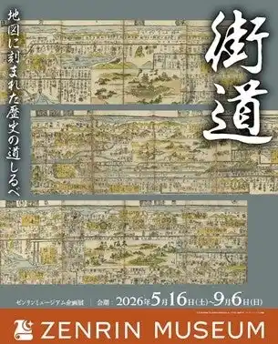 ゼンリンミュージアム(福岡県北九州市、館長:佐藤渉)は、2026年5月16日(土)~9月6日(日)まで、企画展「街道~地図に刻まれた歴史の道しるべ~」を開催します。本企画展では、時代ごとに姿を変えてきた日本の“街道”に注目しながら、当時の人々の営みを読み解きます。さらに、本企画展と当館の常設展示の見どころを凝縮した特別展示を、2026年9月16日(水)~22日(火)までの1週間限定で、東京にて開催します。 |