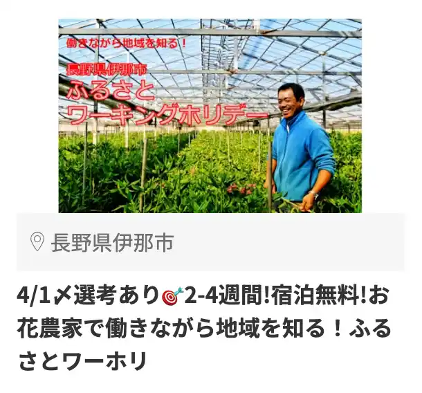 ・4/1〆選考あり 2-4週間!宿泊無料!お花農家で働きながら地域を知る!ふるさとワーホリ(興味ある数:130件) |