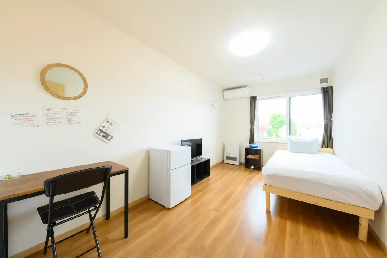 風呂トイレ共有タイプと全室ユニットバス完備のプレミアムタイプの2種類があり、今回開業を予定している「ワークマンハウス苫小牧船見」は全室シングルルーム・風呂トイレ共有タイプ、「ワークマンハウスプレミアム苫小牧北栄」は全室ユニットバス付シングルルームとなります。 |