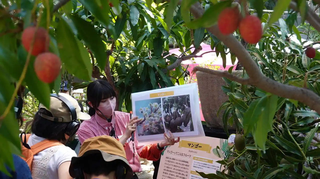 | 熱帯フルーツがどのように育ち、実がなるのかを知っていますか?マンゴーやライチ、バナナなど、熱帯フルーツが、実際に“実る姿”を見ていただけます。さらに、生産国の文化体験やワークショップ、フルーツを活用したグルメなどの様々な体験を通して「熱帯フルーツ」を楽しめる内容となっています。ゴールデンウィーク期間中は、家族連れを中心に、フルーツの魅力を存分に味わうことのできる、咲くやこの花館ならではの過ごし方をお楽しみいただけます。 | |||||||||||||||||||